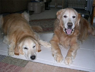 two senior goldens looking at you