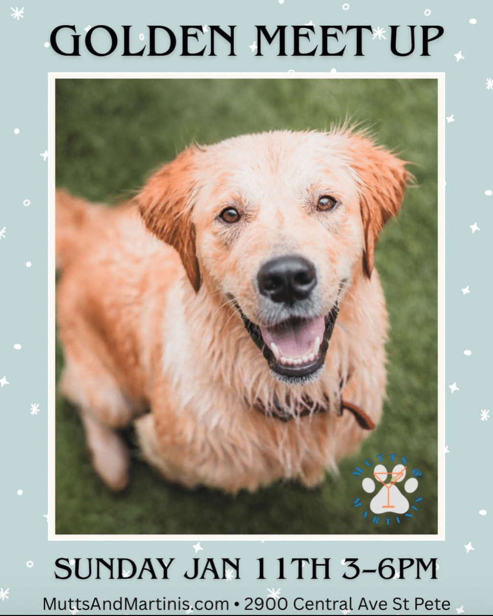 Calling all Golden Retrievers! Join us for a happy, tail-wagging afternoon meetup made just for Goldens and their humans at Mutts & Martinis.