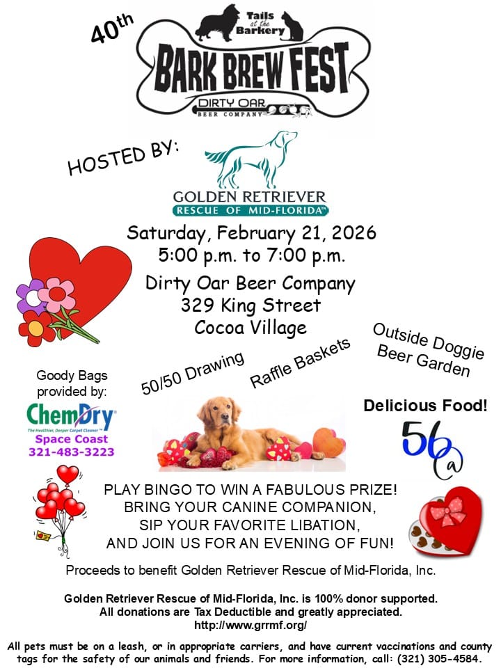 Contact: Golden Retriever Rescue of Mid-Florida, www.grrmf.org or