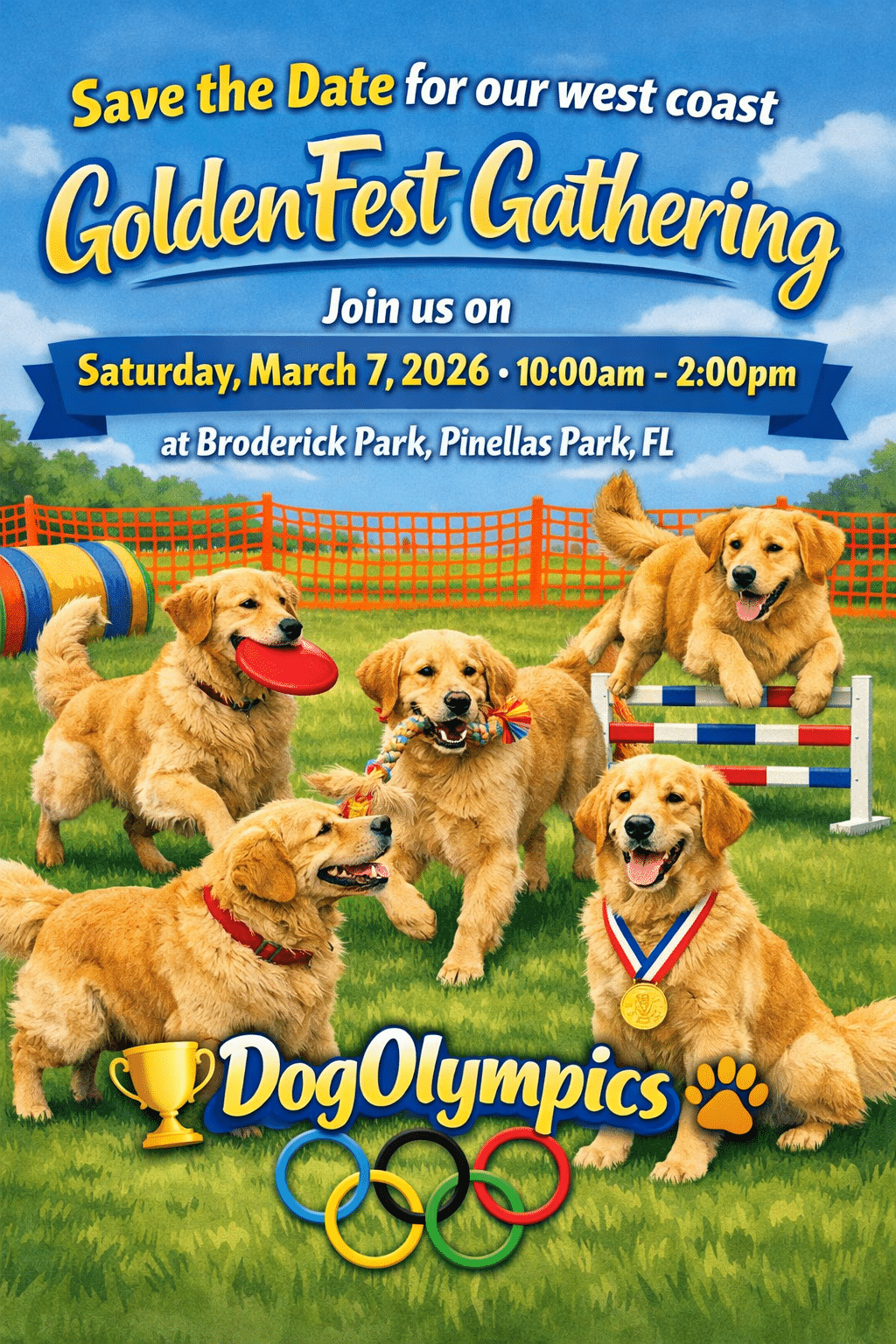Get ready for a tail-wagging good time at our West Coast GoldenFest Gathering — a celebration dedicated to our beloved Golden Retrievers and the people who love them!