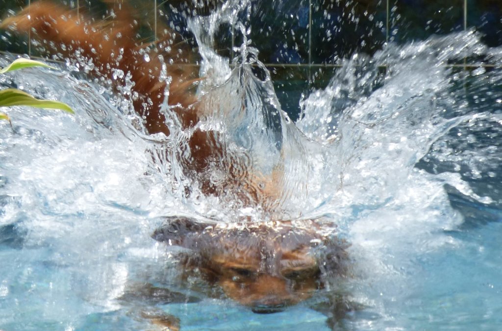 golden diving in pool