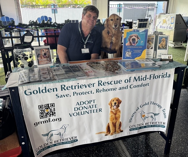 Photo of Charlie and Lala behind the GRRMF information table.