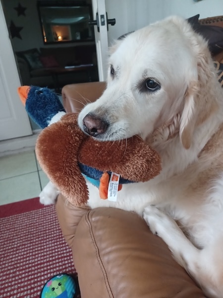 Surprisingly mellow for a supposed bird dog, Blizzard has absolutely no interest in chasing birds, squirrels or lizards. And yet, his favorite toy just happens to be a duck that he seldom lets out of his sight!