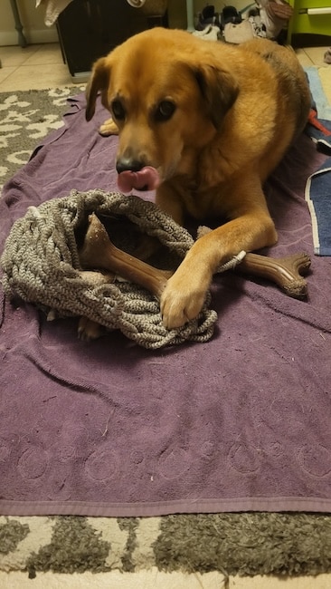 When I first got home I bounced like a bunny rabbit after a moth outside and did a Super Dog play bow to my brother, Barnabas. Mom only let us play for a few moments, but it was great fun. I can’t tell you how wonderful it is to be part of all the family activities again. I can catch delicious treats, play with my toys, do my special double paw sit and greet my mom with my signature nose to nose HELLO.