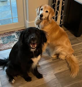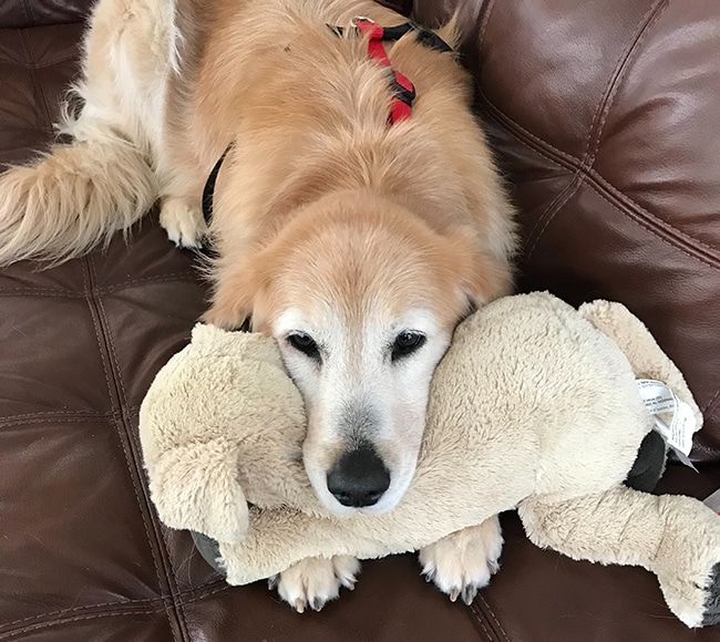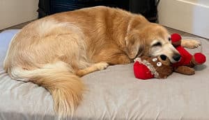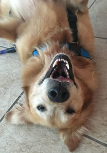 Paris is usually very laidback and she loves getting belly rubs and carrying around her stuffed skunk. You’ll know when she’s happy because she’ll give you a big smile! She likes to be around her humans when they are doing things around the house, but once they settle down to watch TV or work at their desks, she’ll go off by herself to take a nap. Paris is a good girl and knows sit, and is currently working with her foster mom on “waiting” before going out the door. She is housebroken and crate trained, although she does not usually need to be isolated for any reason.
