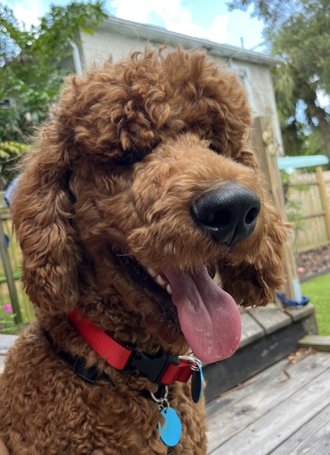 Yogi Bear is a certified therapy dog and full-time heart-melter. With the soul of a healer and the fluff of a life-sized teddy bear, Yogi brings calm, curiosity, and comfort wherever he goes. His tall, elegant frame may give off poodle vibes, but this golden doodle trades the bouffant for something far better—deep, intuitive connection.